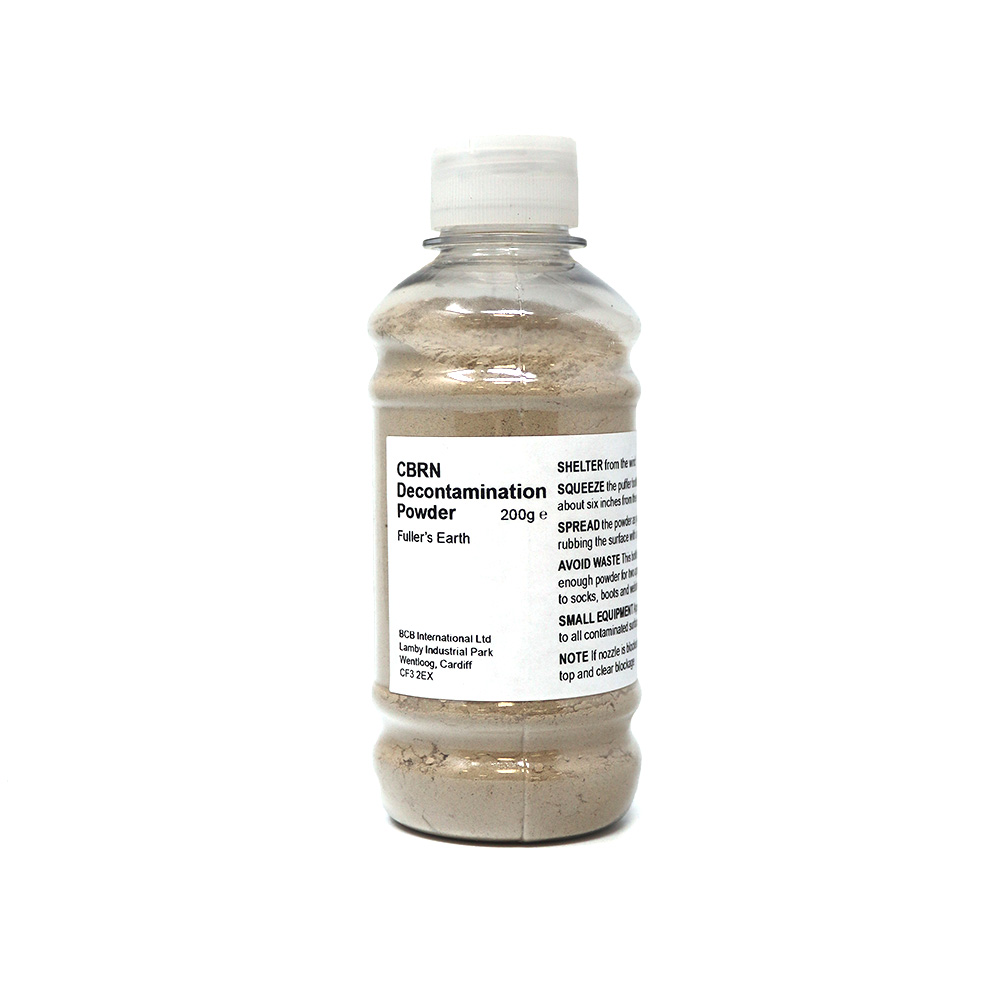 Used by military forces worldwide, Fuller’s Earth is a clay-based powder used for personal NBC decontamination purposes.
